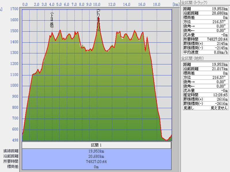 GPS軌跡は、当時の計画書に基づいて作成しているが、コースはピークをつないだ概略図である。