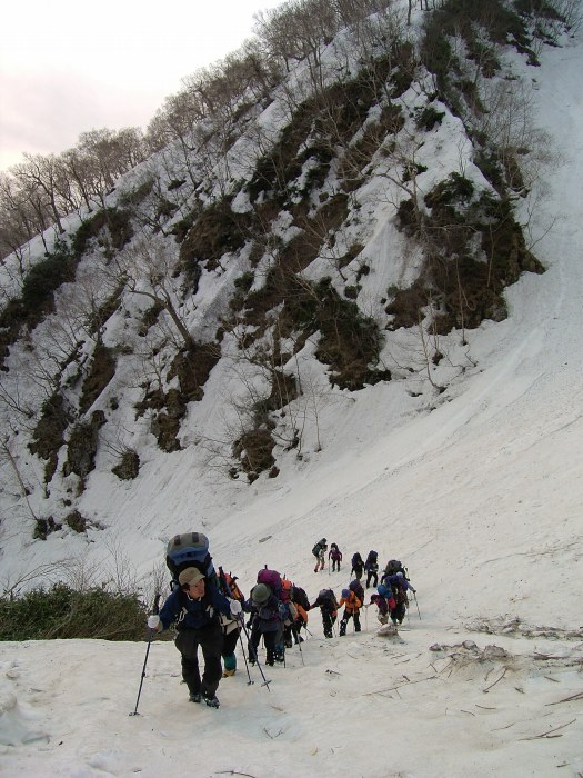 アイゼンに雪が付着して非常に歩きづらかった。4〜5歩毎に雪を落としながら歩いた。