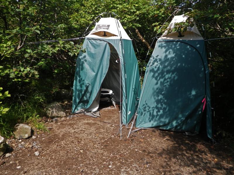 銀冷水にテスト設置されていた携帯トイレ用のテント
