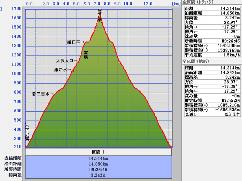 羅臼岳着 10時21分 (1時間00分) (5時間14分)