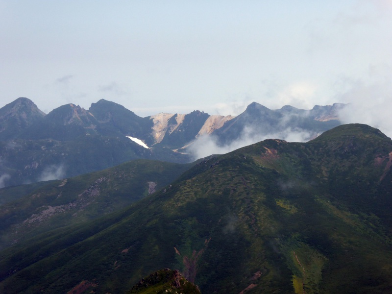 今年は、大沢入口から羅臼平までの斜面に、雪渓が沢山残っていました。