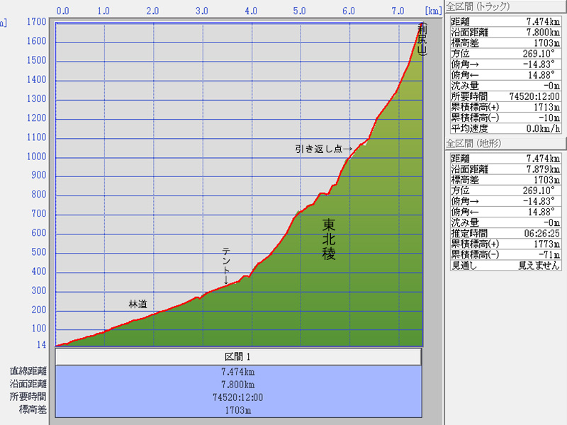 19日 1400m〜長官小屋の範囲で、テント泊または小屋泊
