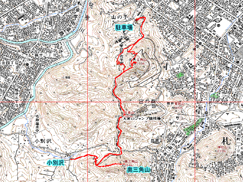 山の手から、三角山経由で小別沢に行き、復路で奥三角山に登りました。