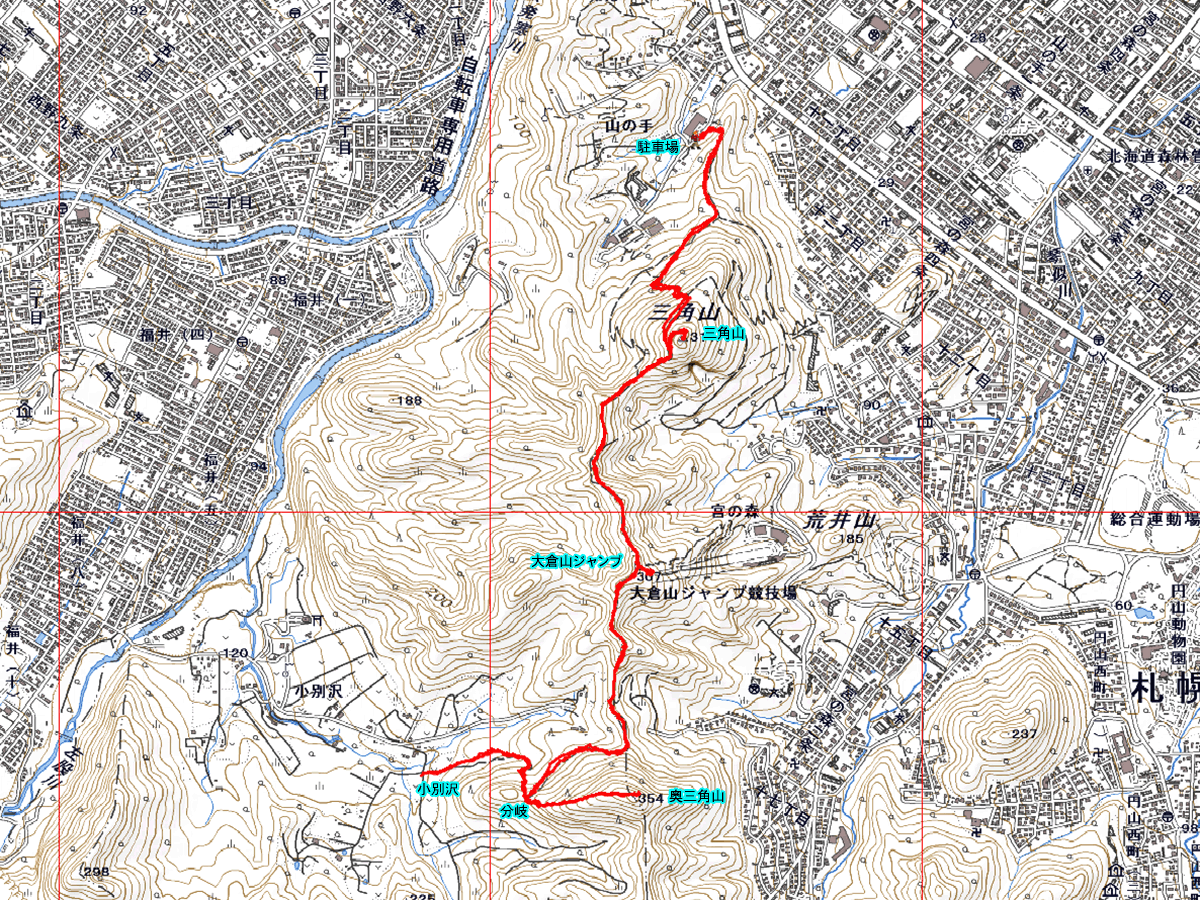 奥三角山の冬道コース(山頂−三角山方面の直登コース)は、現在は夏でも使用されているようです。
