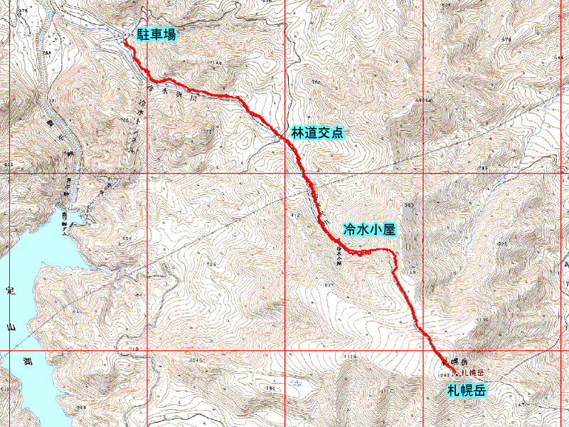駐車場から冷水小屋までの道は湿っている程度で、全く問題はありませんでした。