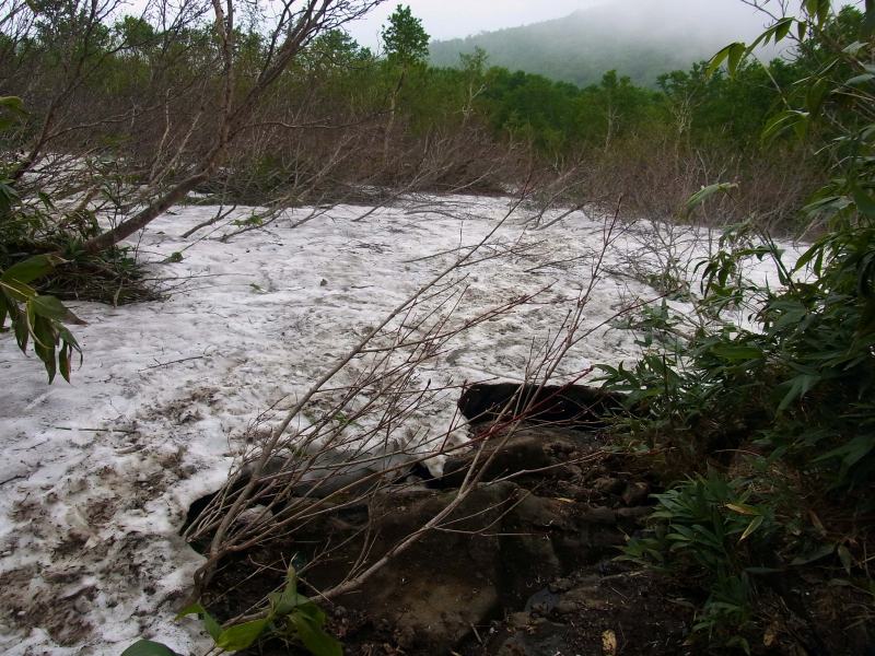 上部の斜面に1ヶ所だけ雪が残っていました。