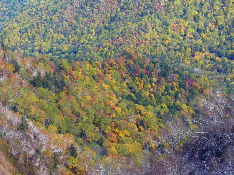 登山道は紅葉(黄葉)がすすんでいますが、星形のモミジは数が少ないようです。