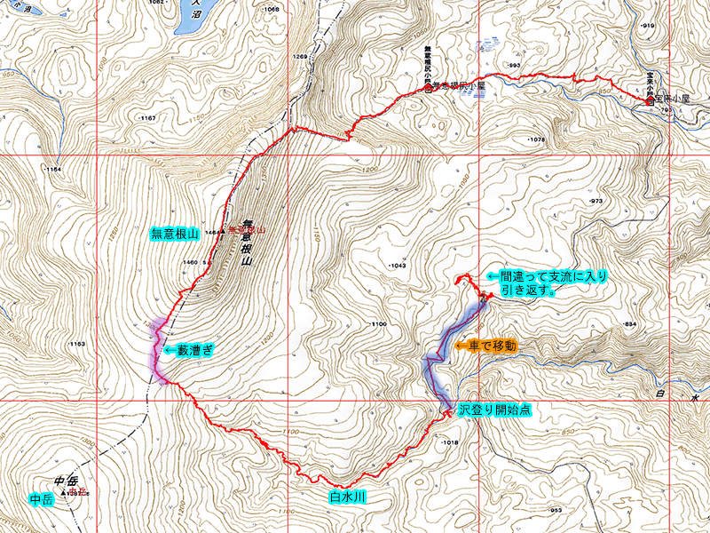 白水沢の沢登りを行い、無意根山山頂経由で宝来小屋まで下りました。