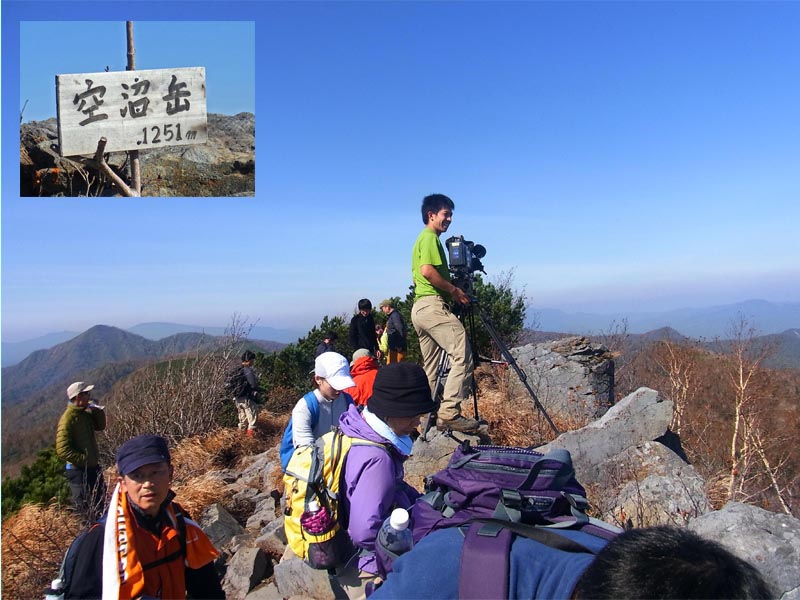 山頂では、NHKのカメラマンがビデオで景色と登山者を撮影していました。