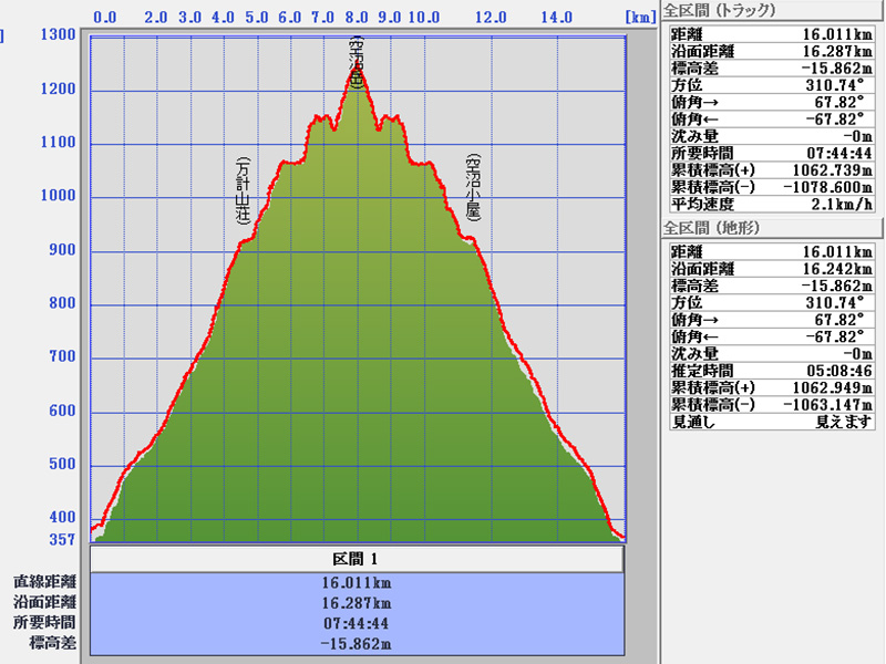 累積標高(+)地形 1062m