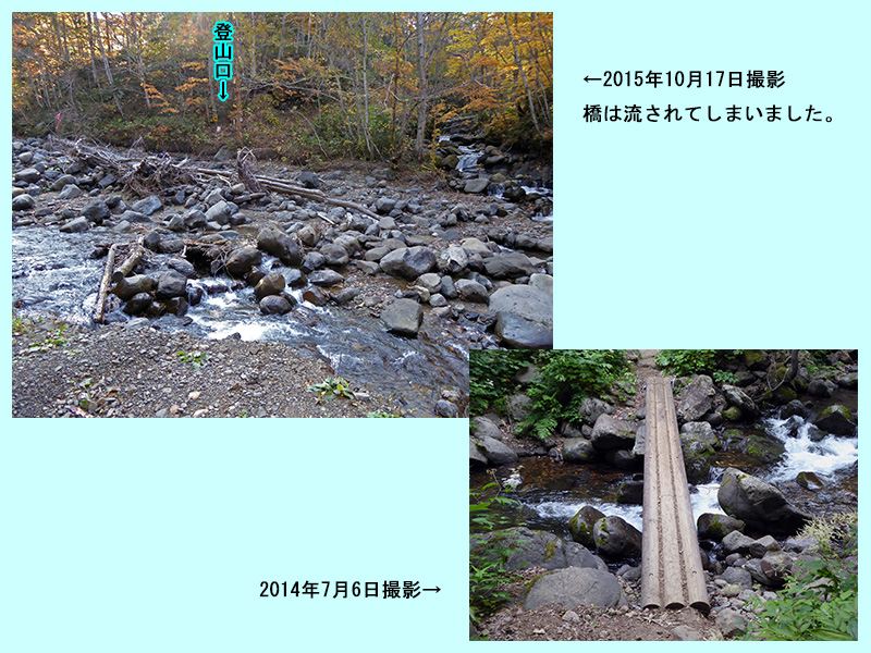 登山道に架かっていた橋は、2箇所とも無くなっていましたが、無くなった時期は判りません。(写真8,9)