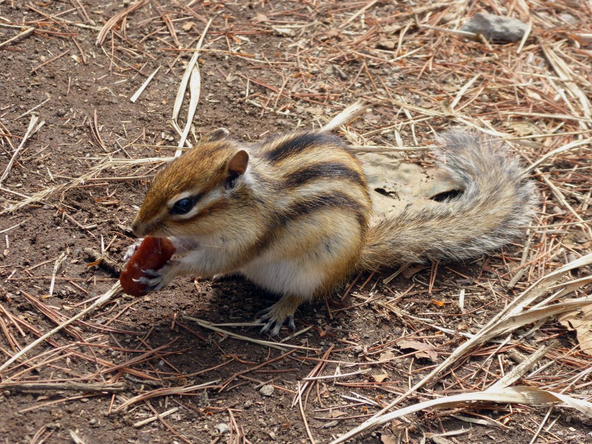 山頂で休憩中に、エゾシマリス1匹が姿を現しました。