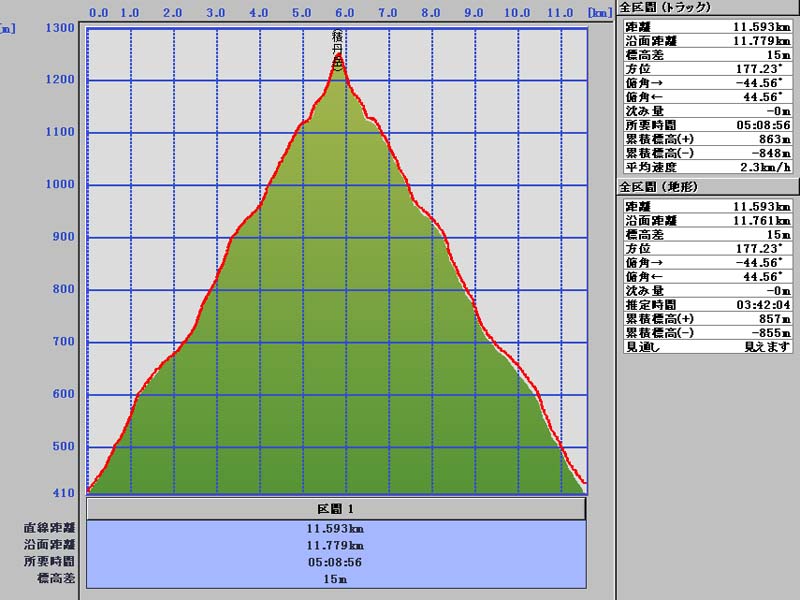 平日のため登山者は私一人でしたが、車で国道に向かっているときに乗用車1台と交差しました。
