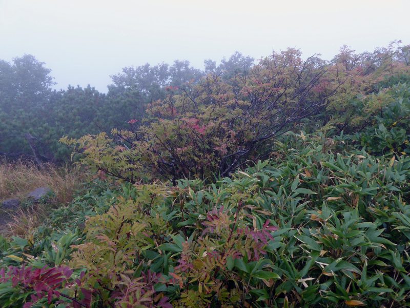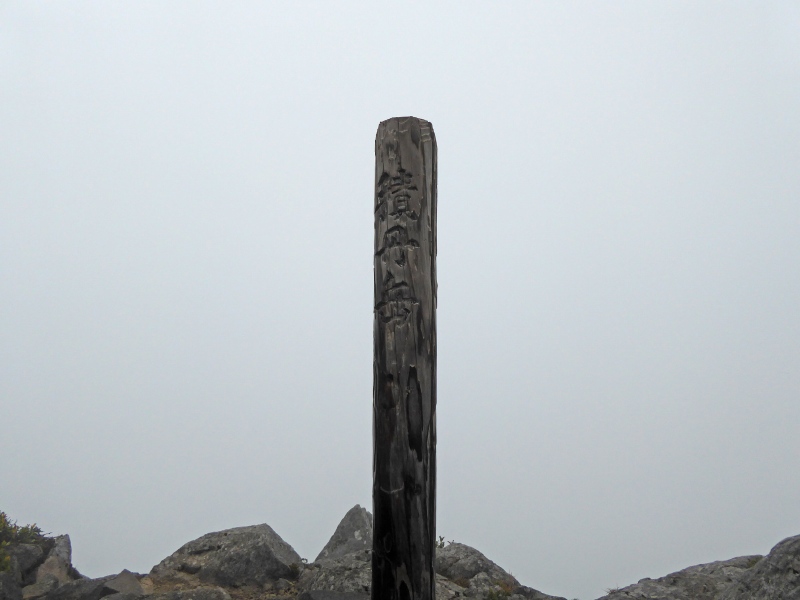 雨雲の中ですので当然ながら遠方視程は不良で、強い風が吹いていることもあり、写真撮影後直ちに下山を開始しました。