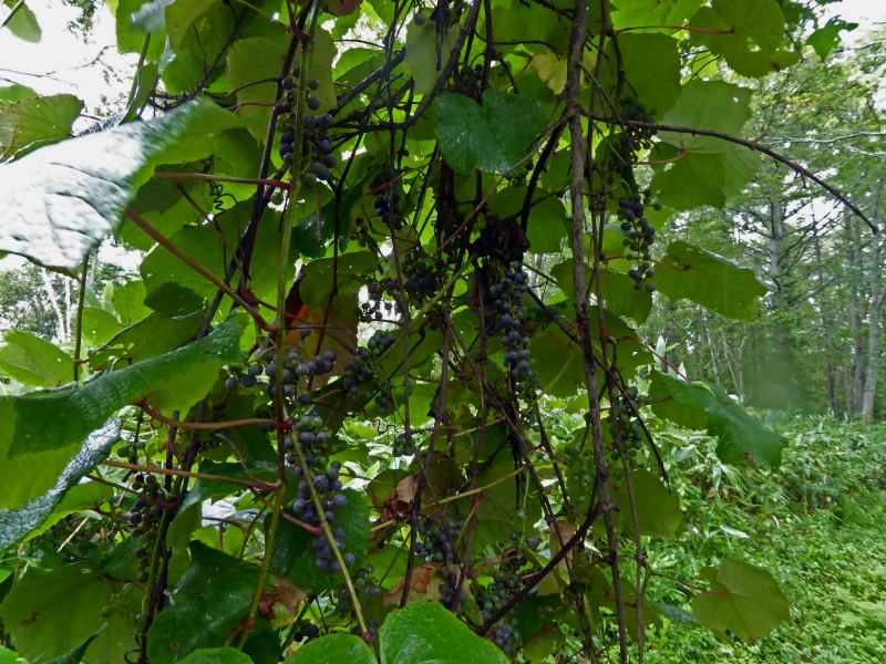 登山道でヤマブドウを見つけましたが、食べ頃はもう少し先と考えて、そのままにしておきました。(写真8,9)