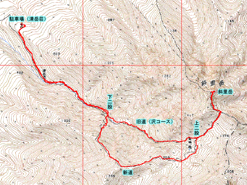 また、登山口〜下二股、上二股〜山頂間もかなりの部分で沢が続きますので、新道経由で下山しても時間の短縮にはなりません。