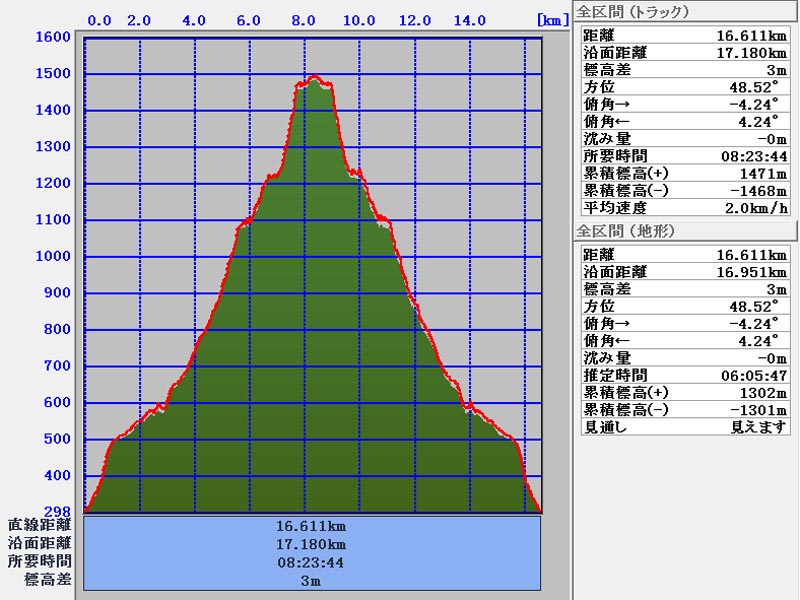 往路は、前回よりも17分遅れていますが、装備変更で13分ほど余分に掛かっているので、ほぼ同タイムです。