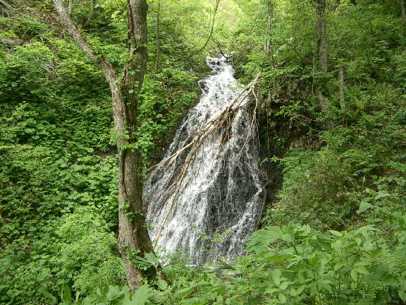 そばの標識が「布敷の滝」表示から「距離表示」に変更されている。