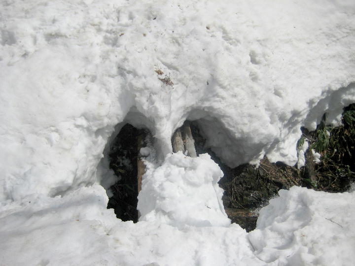 登山道はまだ暫くは冬道で歩けそうです。取り付き部のみ雪が少し薄くなっていますが、それを過ぎると雪はまだ十分にあります。