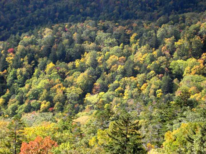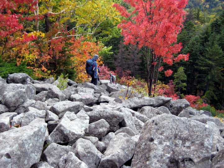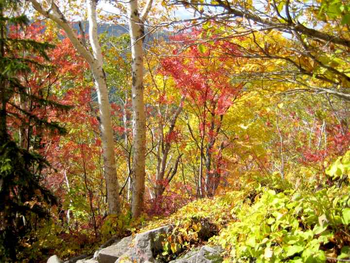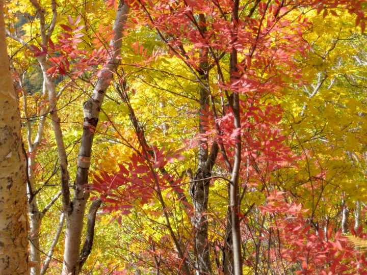 紅葉は思ったより進んでいました。ガレ場付近の紅葉は今が最盛期の様子ですが、標高の低い林道部分の紅葉はこれからです。