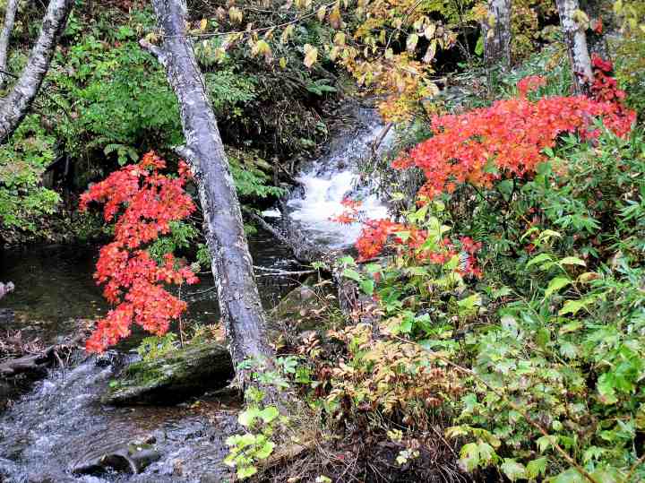 ガレ場は今が紅葉の最盛期です。そこから3番目の橋までは綺麗な紅葉が続いています。