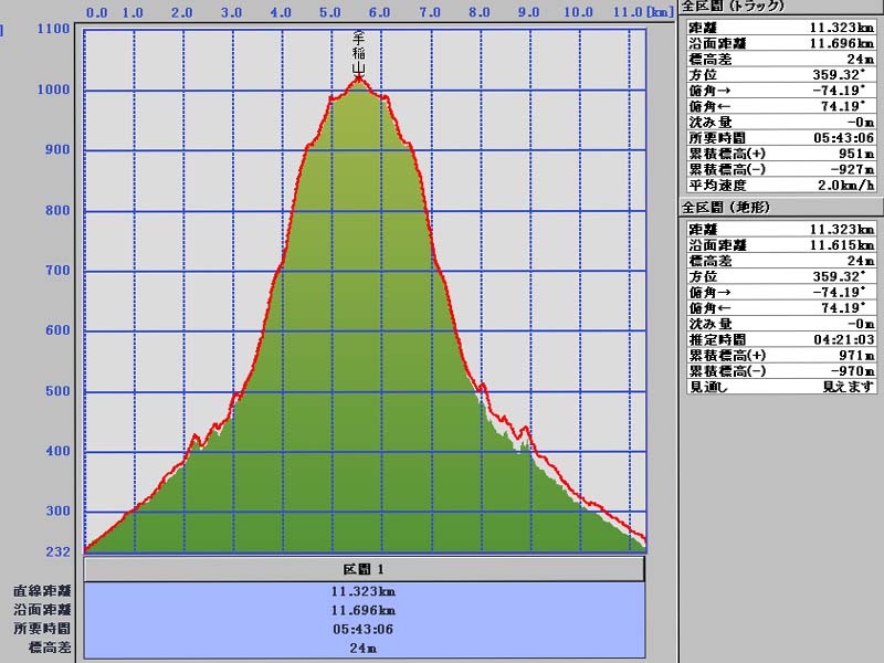 累積標高(+)地形 971m