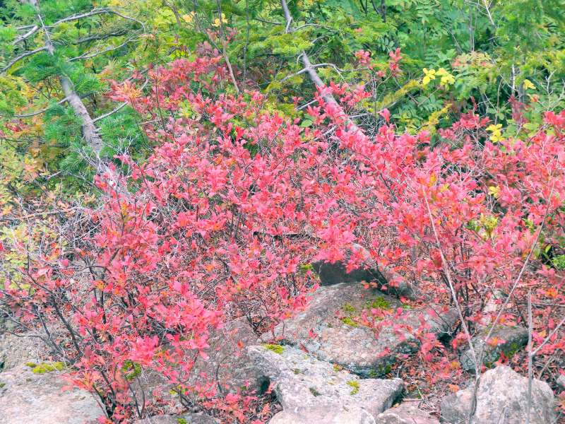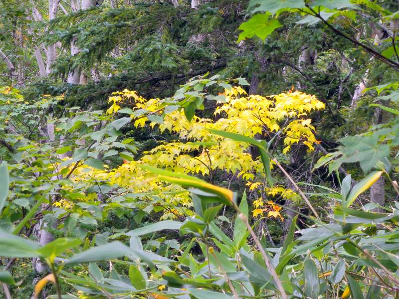 紅葉はカエデ(星形)はまだ始まっていませんでしたが、それ以外の種類の木では少し始まっていました。