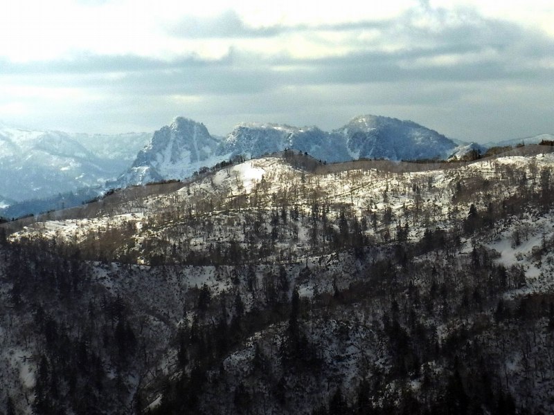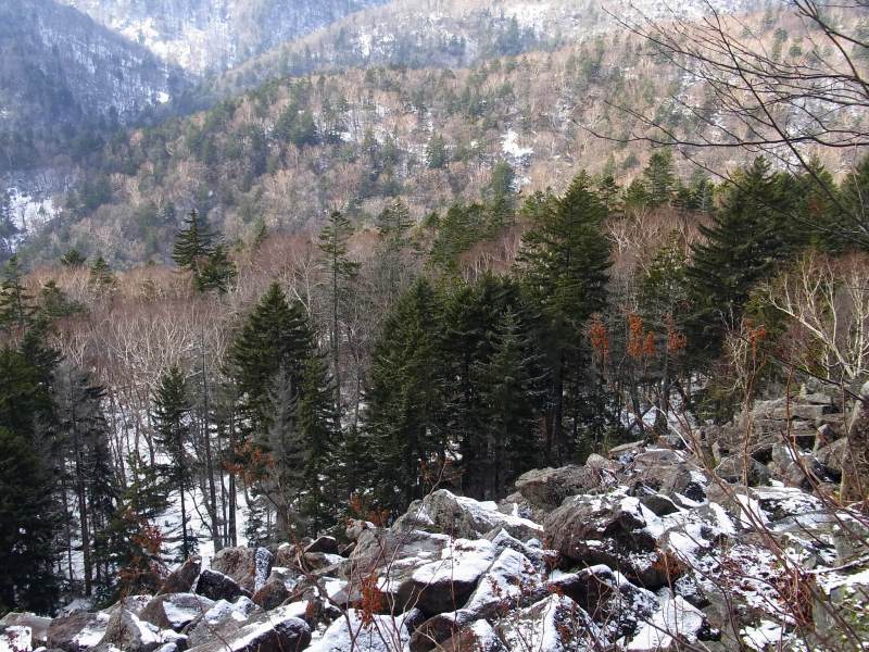 ガレ場を過ぎると、上の方はほぼ雪化粧していましたが、積雪量は僅かでした。