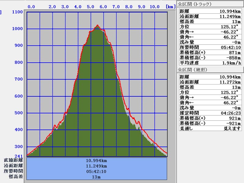 山頂着 11時12分 (1時間33分) (2時間49分)