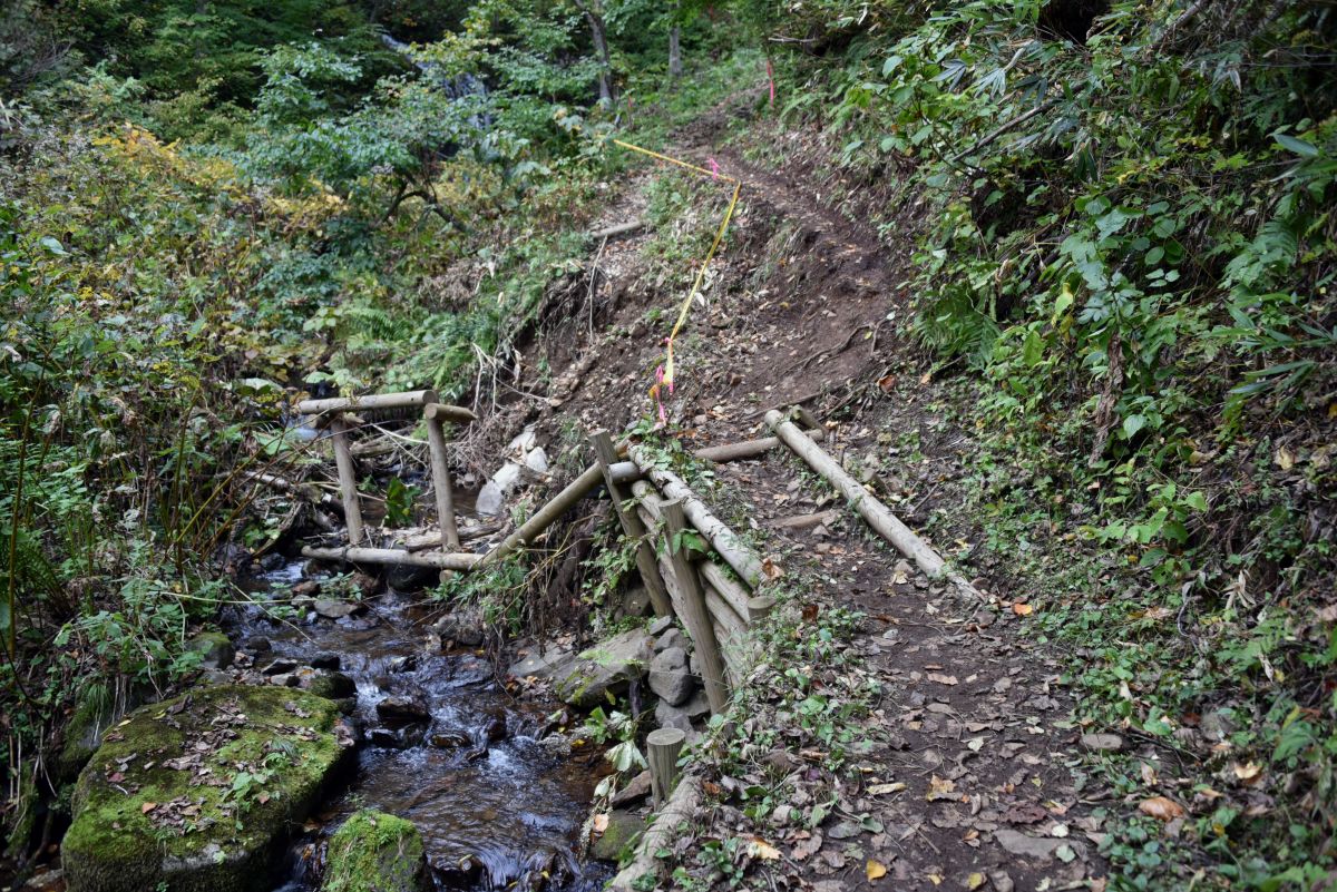 登山道が大水で決壊した部分の修復工事はまだ行われていません。(写真7)