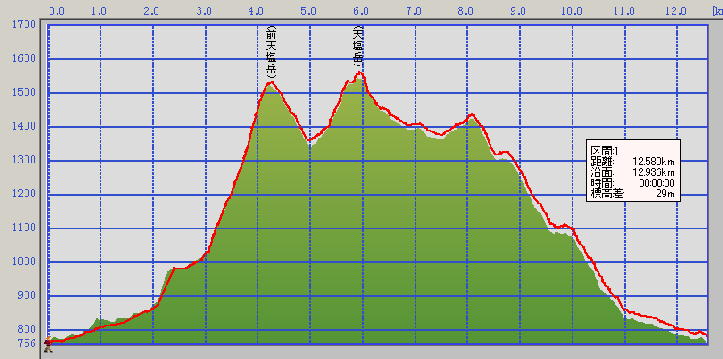 総上昇量 990m