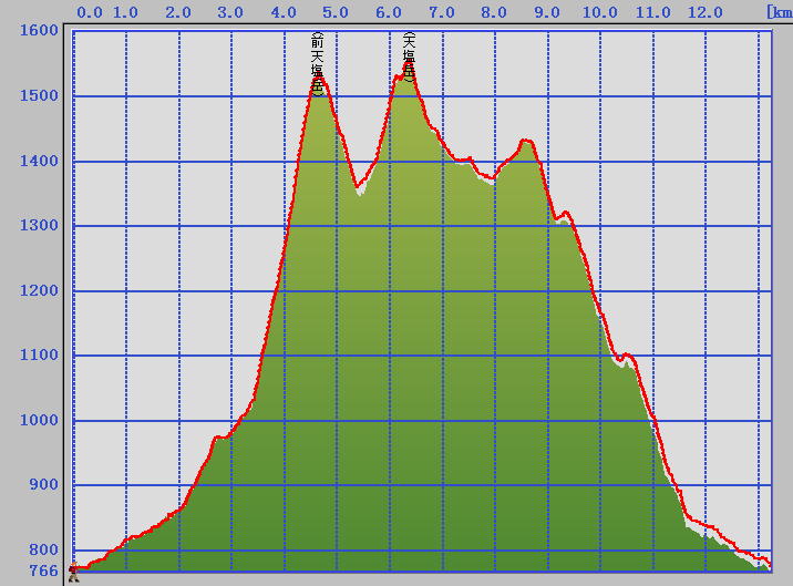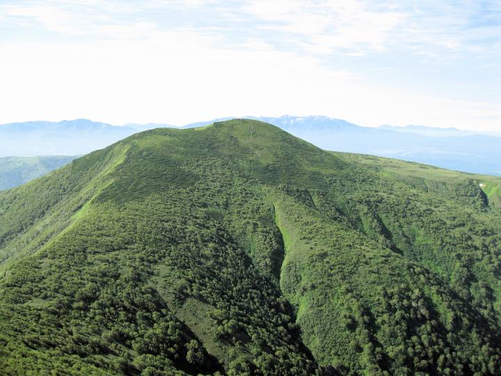 山頂下に見える登山道は、山頂をパスするトラバース道です。