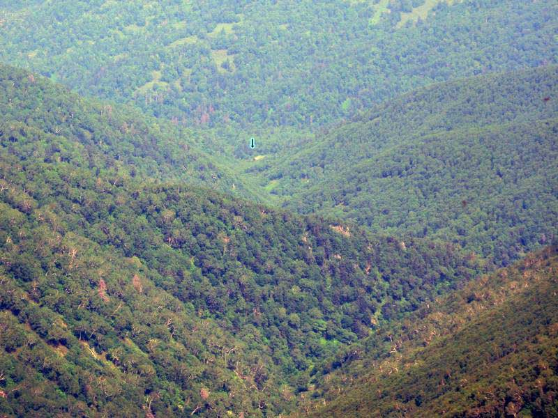 天塩岳山頂から見た天塩岳ヒュッテ