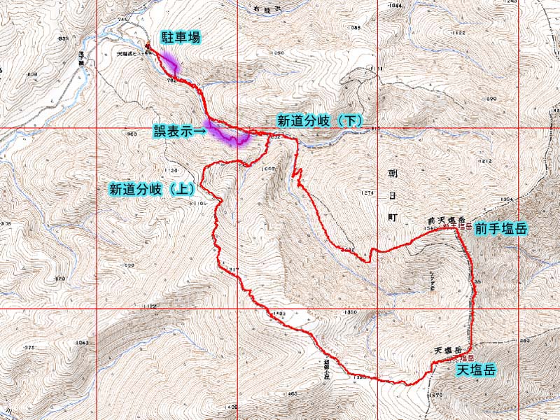 2.徒渉箇所や登山道の荒廃が心配な場合は、前手塩岳側から登ること。