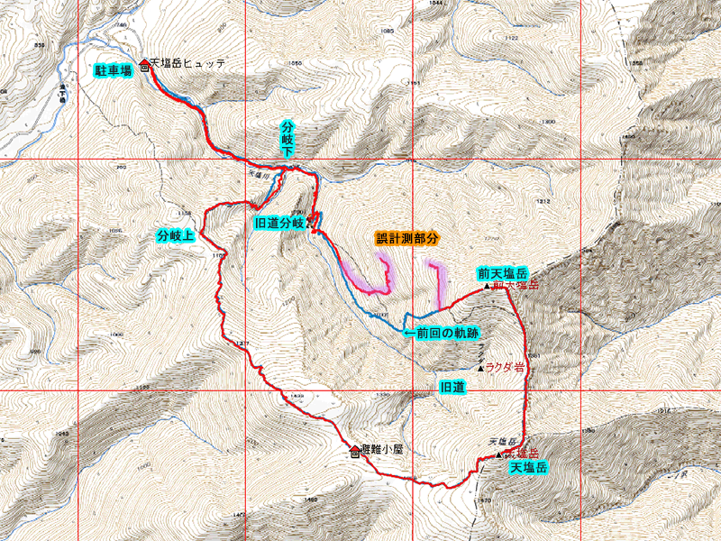 どうやら、旧道分岐で休息した際に、ザックの上蓋を開けた時に上蓋に入れていたGPS装置が下向きになり、GPS衛星電波を一時的に受信できなくなったことが発端ではないかと推測されます。