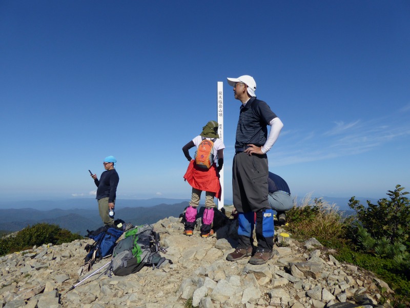 その後高校の山岳部と思われるグループが下山してきたので話を聞くと、このグループは「天塩岳→前天塩岳」の順番で縦走し、前天塩岳の徒渉部分を通過してきたとのことでした。