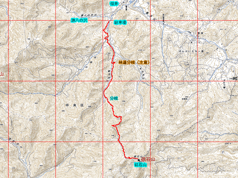 登山口から約1.7km付近に林道分岐2箇所あり。判りづらい。要注意箇所。