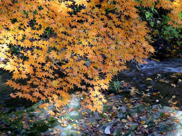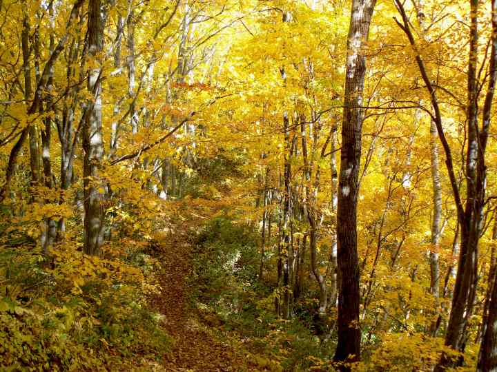 登山道は紅葉の最盛期です。赤色が少なく殆どが黄色ですが、今日は日照があったため鮮やかな金色に輝いていて大変綺麗でした。