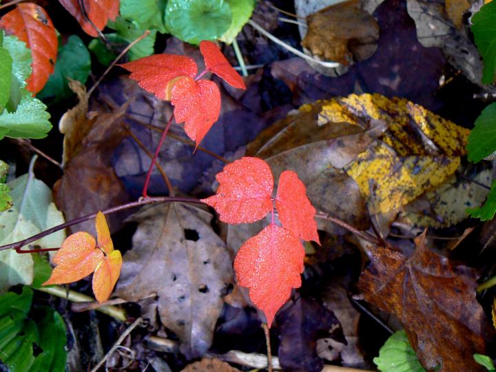 黄色の葉は5裂で一応星形に近い形をしているのですが、赤くなる「もみじ(カエデ)」とは違うようです。