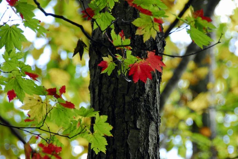 砥石山は中腹が紅葉のピークに近いですが、下の方はまだ紅葉が少し始まった程度です。