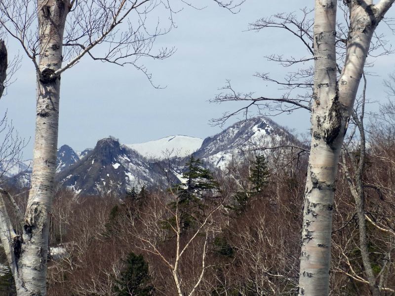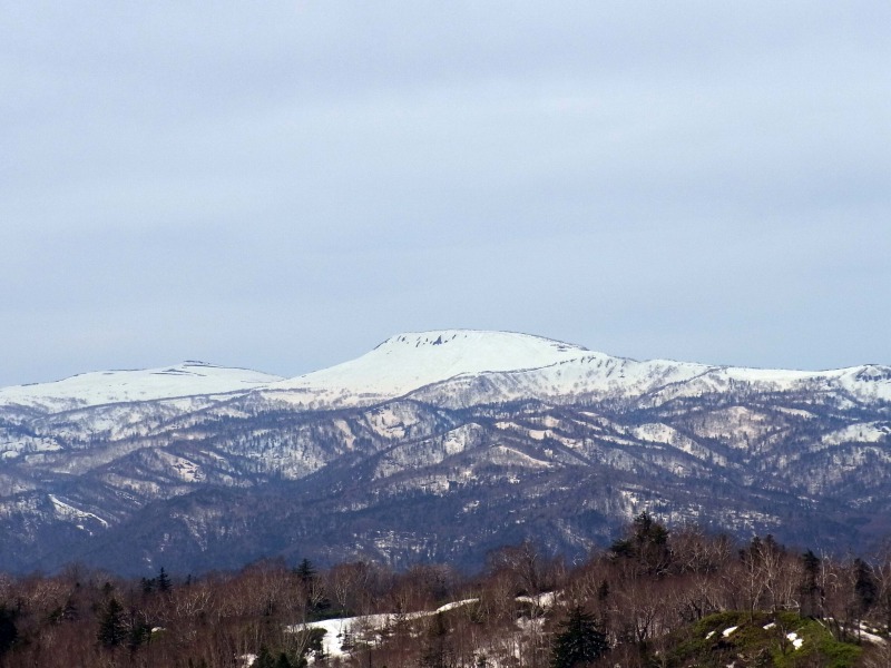 遠くから見ると、まだ雪が残っていますが、時期的にみて雪も減ってきており、登頂可能と考えて6本爪アイゼンとストック2本を携行して出発しました。