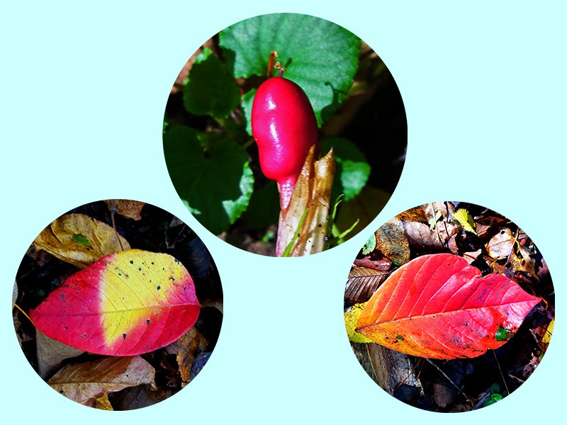 登山道は、全行程で落ち葉が表面を覆っていて、それが雨で濡れているので、下の状態が判らないうえに滑りやすい状態でした。