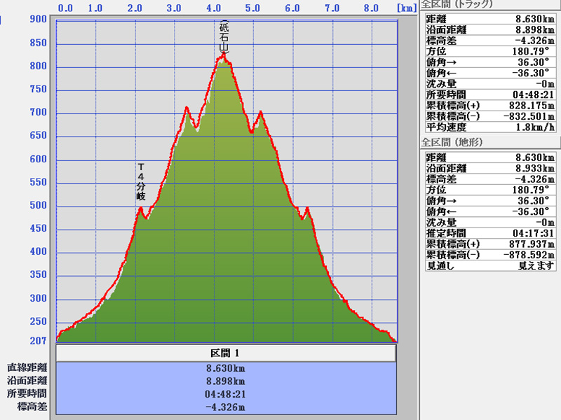 山頂発 10時55分 (0時間47分) (0時間47分)