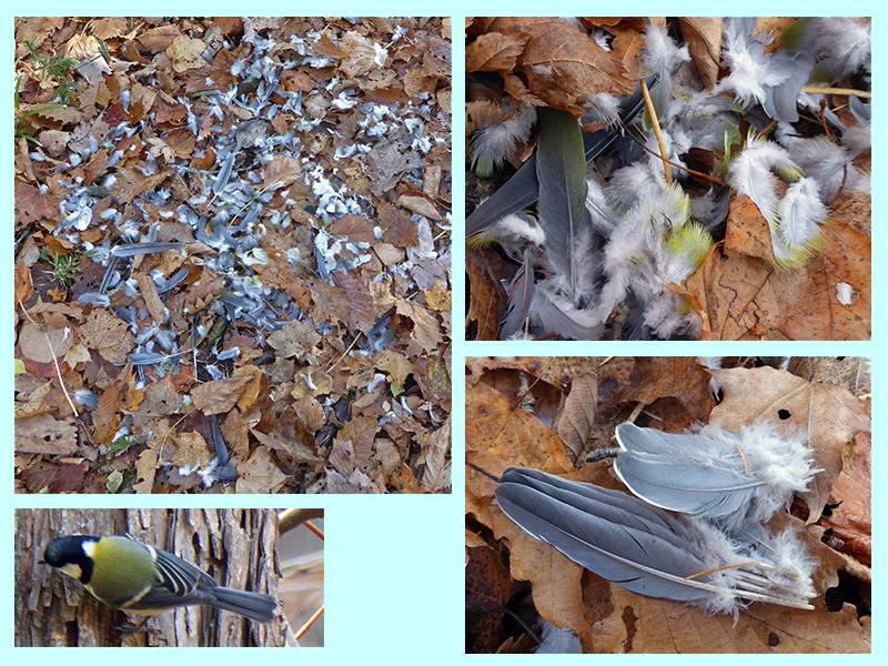 登山道では、偶に小鳥の食べられた跡を見ることがありますが、今日も1箇所で見かけました。(写真8)