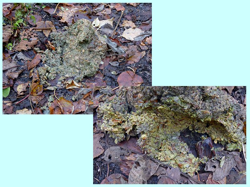春にフキ・セリなどの山菜を食べると真っ黒な糞になり、果実を食べると茶色が強くなり、デントコーンなどを食べると黄色が強くなります。