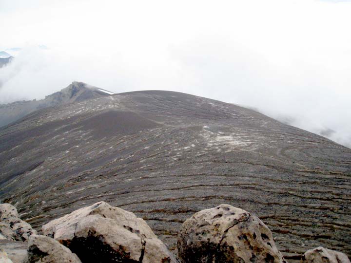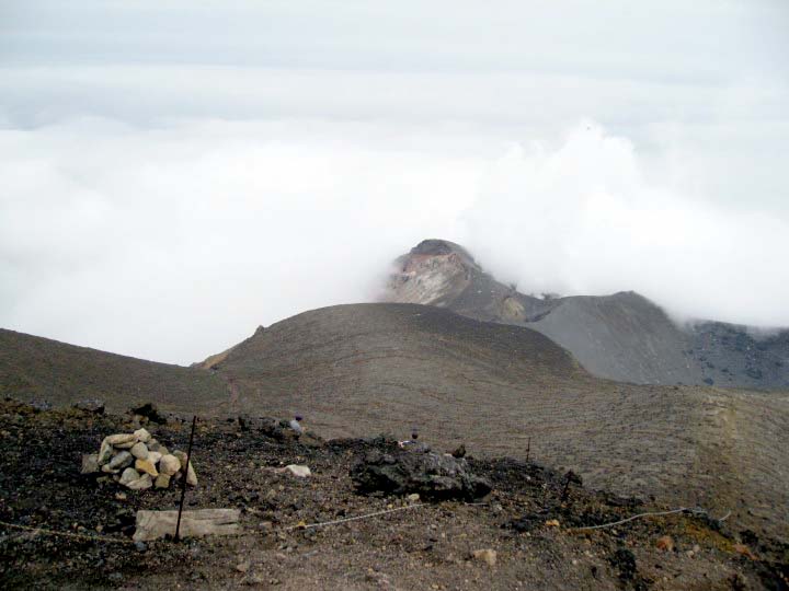 十勝岳は小屋跡から少し登ったあたりから、全く草木が無い完全な火山灰地です。