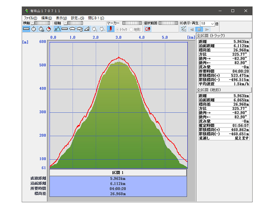 南外輪山展望台の往復のみですと、総上昇量・距離とも札幌の藻岩山(慈啓会病院コース)登山程度になります。