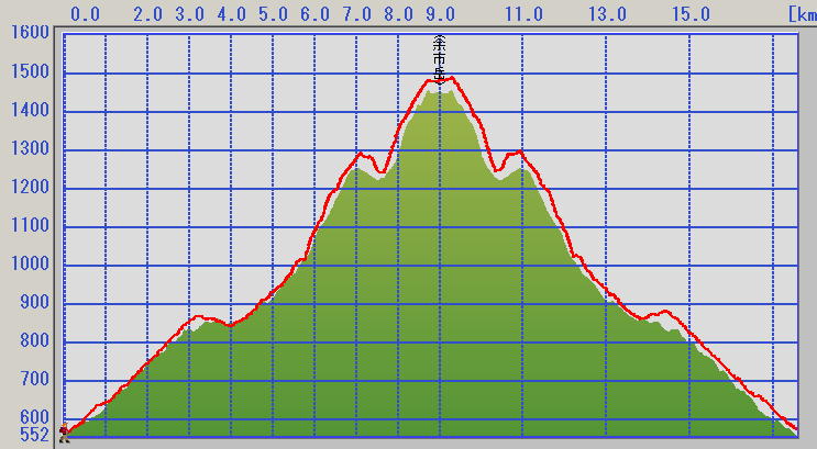 最近の山行は距離が16km未満ですので、今日は最長の距離(17.9km)になりました。林道の往復7.4kmが余分です。
