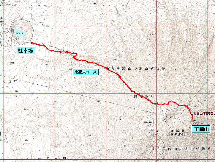 比羅夫コースは平成15年6月に登っていますが、その時は「往路4時間12分、復路3時間23分」でした。