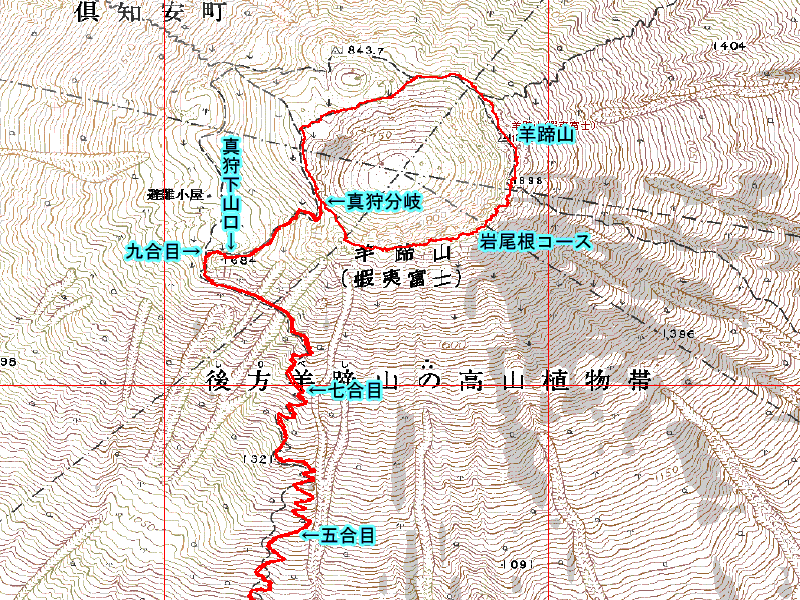 途中で追い抜かれた女性1名に真狩下山口で追いつき会話を交わしました。山頂には同時に到着して、また話しかけられました。